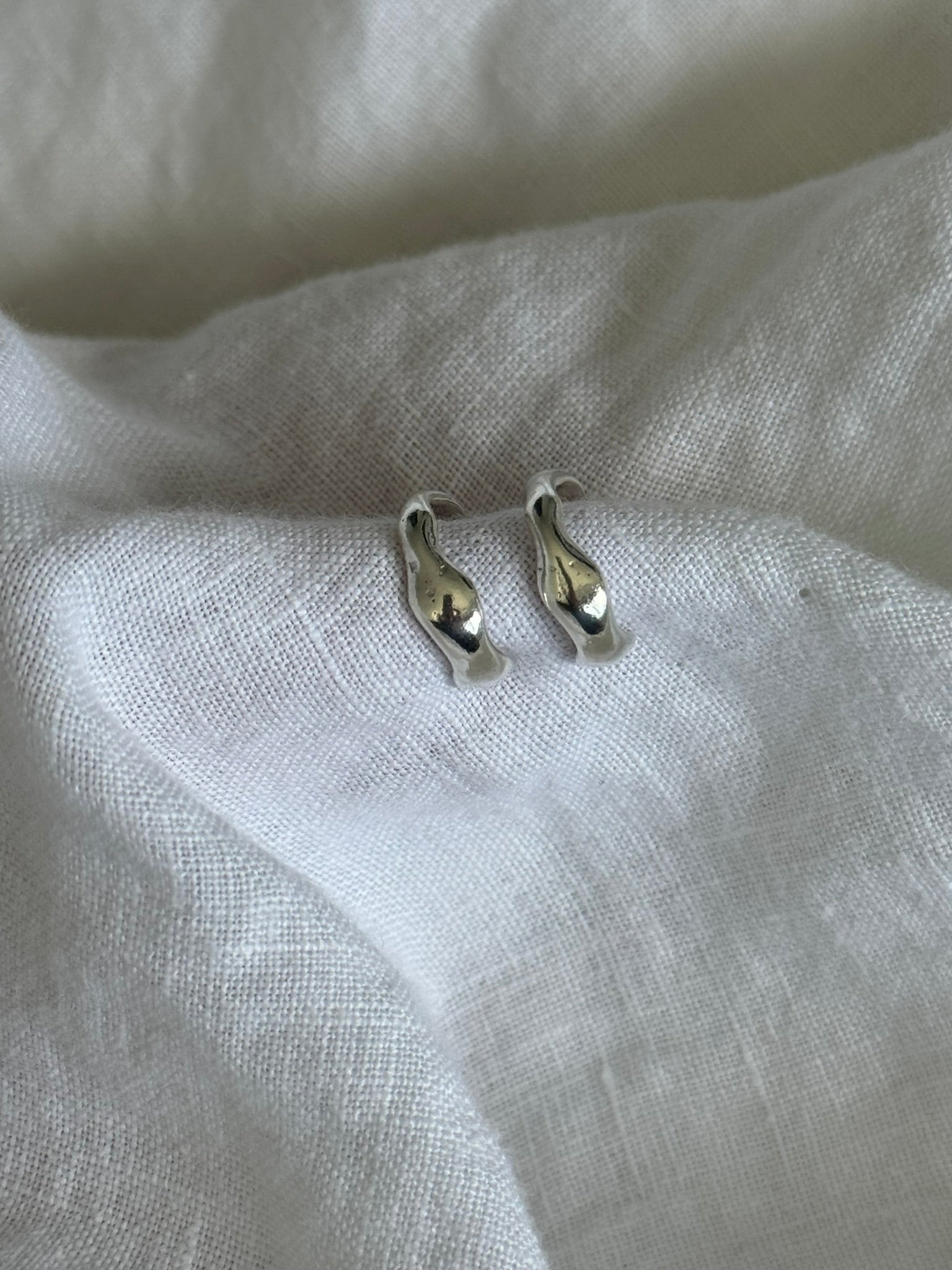 Hoops that are easy on the eye and the planet. Made from recycled sterling silver, these hoops are the perfect addition to your daily look if you're into organic molten forms and unique jewellery. These hoops are made from lost wax casting and cast from solid recycled silver.