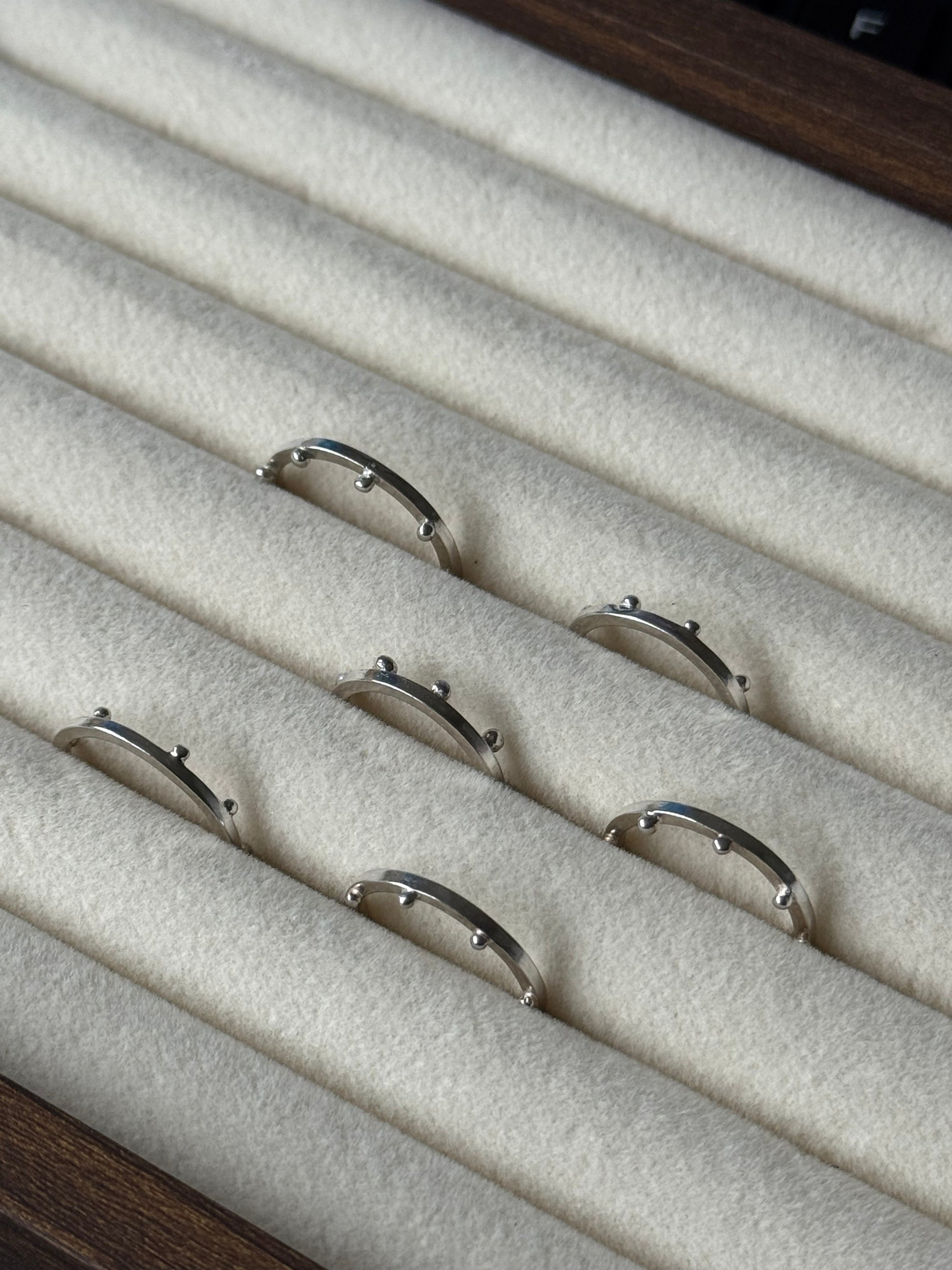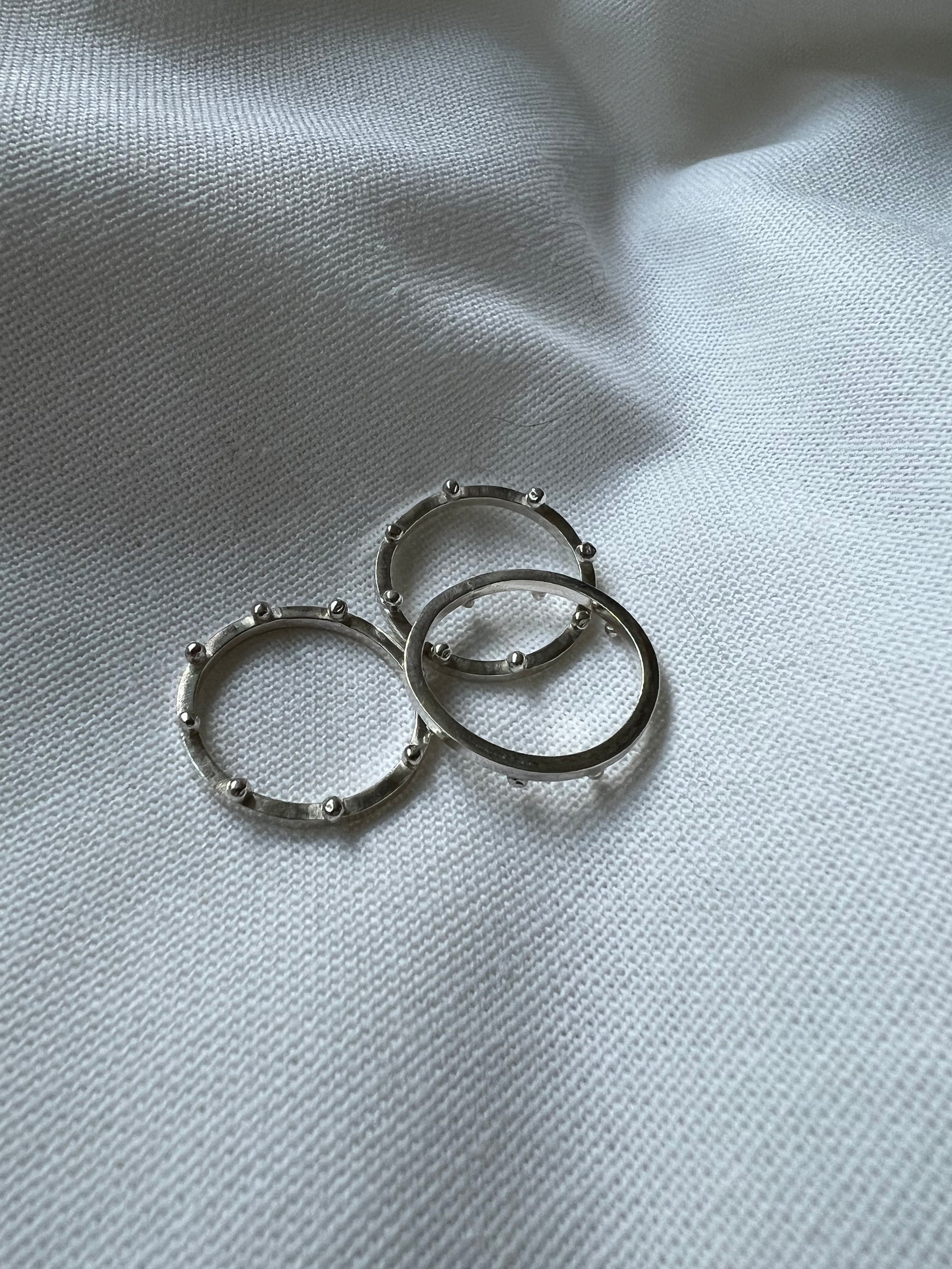 This dainty layering ring is handmade from sterling silver, each ball is individually melted and soldered onto the band. Why not check out the matching hoops, they come in two different sizes.